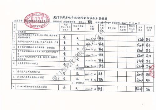 2022年第三季度揮發(fā)性有機(jī)物整治企業(yè)自查表