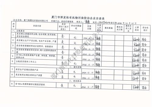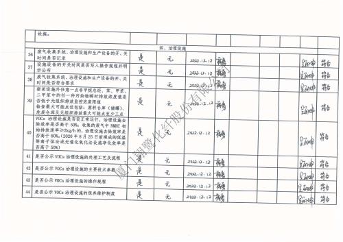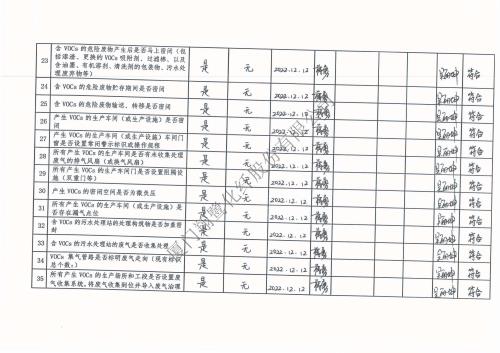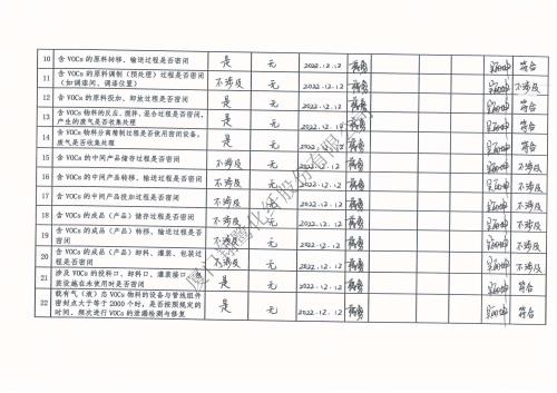 2022年第四季度揮發性有機物整治企業自查表
